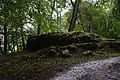 El castillo fue construido utilizando rocas de gran tamaño. El muro exterior del castillo a nivel del suelo tenía unos 2 metros/6 a 7 pies de espesor.