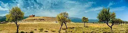 El castillo de La Calahorra se ubica en la parte más elevada de un cerro amesetado, lugar privilegiado para controlar las tierras del Marquesado y sus comunicaciones y formando parte de un paisaje singular en las estribaciones de Sierra Nevada.