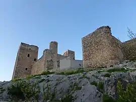 Cada extremo de la fortaleza está protegido por una torre. La circular defiende el extremo Suroeste, y siguiendo en dirección Sur, encontramos otra torre, esta de planta cuadrada y de pequeñas dimensiones; también fue reelevada y recubierta con una bóveda de cañón. La torre que ocupa el extremo Noreste presenta planta rectangular estructurada en dos niveles, el inferior está muy alterado por las restauraciones recientes, y el superior cubierto con una bóveda de cañón apuntada con arcos fajones. Finalmente, el extremo Noroeste estaba defendido por la Torre del Homenaje, de unos 35 metros de altura, que tiene planta cuadrada dividida en tres cuerpos. El nivel inferior es macizo y se adapta a la roca geológica en la que se apoya. El segundo nivel está cubierto por una bóveda gajada, configurando un espacio interno de planta octogonal, y en su alzado se abren cuatro vanos, uno de éstos es la puerta de acceso a la torre, y los otros tres son aspilleras, conservándose hoy solo uno, pues los demás se transformaron posteriormente en balcones miradores. Al tercer nivel y a la terraza se accedía a través de una escalera embutida en sus muros y cubierta con pequeñas bóvedas de cañón. La estancia que se abre en el tercer nivel estaba cubierta con una bóveda de nervios, iluminándose con cuatro vanos o aspilleras.