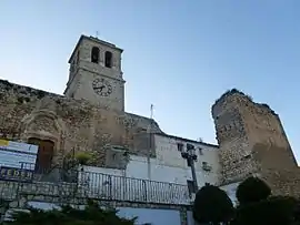También se construirá la Iglesia de Santa María, en el sector Noreste del recinto exterior. El templo es de planta rectangular, con seis capillas laterales, y su ábside aprovecha la única torre que existía, como ya vimos, en todo el recinto amurallado de la Alcazaba, y que defendía la puerta de acceso a la misma. A este edificio se le adosa una torre-campanario de nueva planta, apoyada en estructuras que configuraban el sistema de acceso al interior del recinto.[2]