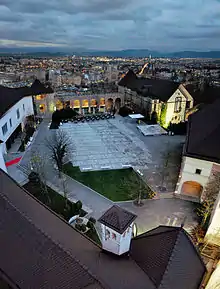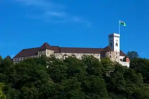 ![]() Castillo de Liubliana desde la ciudad de Liubliana. | ||