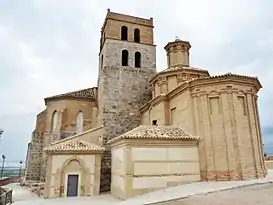 ![]() Iglesia de San Lorenzo de Magallón con su campanario, único resto del desaparecido castillo de Magallón | ||