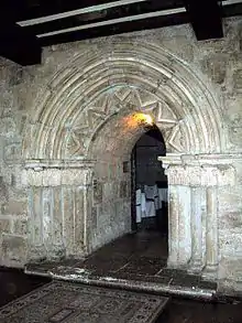 La portada románica de la iglesia de Santa Eugenia del desaparecido pueblo de Cenera de Zalima[1] anegado en el pantano de Aguilar, se halla actualmente ubicada dentro de este castillo.