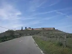 La entrada, al norte, consiste en dos torres emparejadas con un arco de medio punto, puerta de arco roto, alcantarilla y sistema de rejilla. Está defendida por una media barandilla con cuatro cañoneras y una barbacana, presentando un orejón derecho para la protección de la puerta de la fortaleza y está defendido por una casamata con siete huecos.