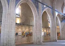 - la línea intermediaria, erguida en el siglo XV, está compuesta de murallas más robustas, donde se inscribe la plaza de armas, la Iglesia de Santa María (erguida en el siglo XII y reedificada en el Renacimiento), el Convento y la Iglesia de Santiago de Palmela, obras góticas cuatrocentistas.