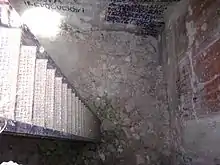 El aljibe[3] se llenaba por medio del brocal central del patio y de una canalización de cerámica que recogía el agua de lluvia de los tejados. El aljibe tiene una bóveda de medio punto y una altura aproximada de cinco metros. Todo el aljibe está cubierto por una sustancia rojiza impermeabilizante y antifúngica empleada por los árabes.