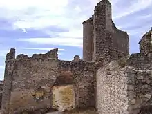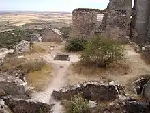 - A los veinte y nueve capítulos dixeron: que la dicha villa tiene una fortaleza, un cuarto de legua de la dicha villa, que se dice El Castillo de Almenara, que está en la sierra Jarameña en un cerro alto, que está entre el término de la dicha villa y el de la de Villamayor, que es de la Orden de Santiago, que tiene tres puertas principales. La primera está en la primera cerca, hacia poniente; y la otra junto al rebellín; y la otra en el cuerpo de la fortaleza.