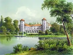 El palacio, en la orilla oriental del Grienericksee, es un clásico ejemplo del estilo arquitectónico así llamado rococó de Federico y sirvió como base para el Palacio de Sanssouci.