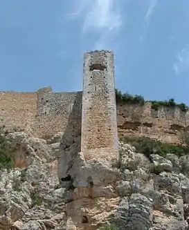 El castillo se reconstruyó sobre las ruinas de una fortificación árabe del siglo XIV, las cuales estaban sobre restos bizantinos, probablemente sobre un asentamiento militar romano.