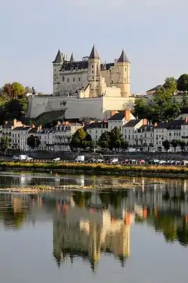 El castillo de Saumur (en francés, Château de Saumur) localizado en la ciudad francesa de Saumur, en el departamento de Maine y Loira, fue construido originalmente en el siglo X[2] por Thibault le Tricheur, conde de Blois como baluarte defensivo contra los normandos. Domina la confluencia de los ríos Loira y Thouet. En 1026 pasó a manos de Fulk Nerra, conde de Anjou, quien lo legó a sus herederos de Plantagenet. Tras su destrucción en 1067, el castillo fue reconstruido por Enrique II de Inglaterra a finales del siglo XII en estilo gótico.