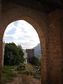 La entrada principal del castillo es una torre cuya estructura, en forma de codo, está documentada del siglo XI, procedente del norte de África. Esta táctica tenía un alto valor defensivo, ya que, en realidad, son dos puertas a rebasar por el enemigo. En el siglo XV, en esta puerta, había una especie de casa con contrasuelo de buenas maderas, vigas y piedras con una cámara encima que servía de cocina y dormitorio.