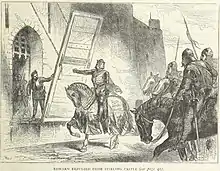 En 1297 se produjo la célebre batalla del Puente de Stirling donde el soldado escocés William Wallace derrotó por primera vez a Inglaterra en las denominadas Guerras de independencia de Escocia. A principios del siglo XIV el castillo sufrió un sitio por las tropas inglesas de Eduardo I, donde los historiadores indican que fue utilizado por primera vez Warwolf, el mayor fundíbulo que nunca se haya construido, con efectos devastadores.