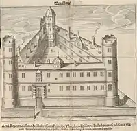 El castillo fue destruido varias veces durante su historia. En 1646,[4] durante la guerra de los Treinta Años, tropas suecas[5] bajo el mando del general Carl Gustaf Wrangel lo destruyeron. A partir de 1654, el castillo fue reconstruido por el príncipe-obispo Theodor Adolf von der Recke y su sucesor Ferdinand von Fürstenberg, sufriendo algunos cambios arquitectónicos con los que el castillo ganó cúpulas barrocas para sus tres torres.[6]