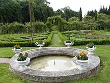 9. En el corazón de la casa señorial, en un espacio dominado por un ciprés rodeado de cuadrados de césped y boj decorados con jarrones reales, el Jardin du Silence (Jardín del Silencio), creado en 1997, con su antiguo pozo y palomar, es a la vez elegante y severo.