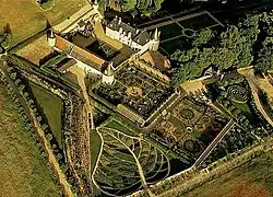 ![]() Vista aérea del castillo de la Chatonnière y el parque y los jardines que lo rodean. | ||