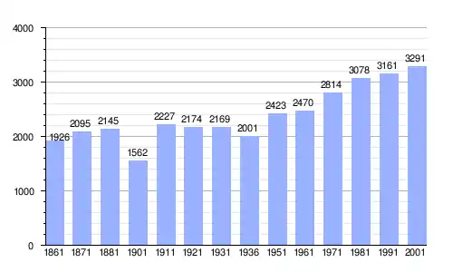 Gráfica de evolución demográfica de Castione della Presolana entre 1861 y 2001 |