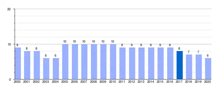 Gráfica de evolución demográfica de Castrillejo de la Olma entre 2000 y 2020 |