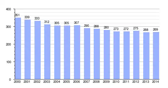 Gráfica de evolución demográfica de Castro de Laza entre 2000 y 2014 |