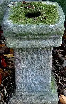 Cerca de la puerta este de entrada a la acrópolis, a su derecha, se descubrió una interesante estructura de planta cuadrada y formada por tres escalones, una especie de pedestal, que recuerda a los tradicionales cruceros, y que quizás sirviera de base para una estatua.