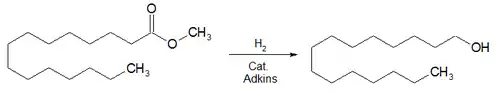 - Hidrogenación de ésteres a su alcohol correspondiente.[5]