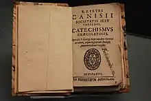- Este artículo toma como base la traducción de fr:Catéchisme de Canisius, exactamente la versión 10:59 10 sep 2020 bajo licencia GFDL y CC-BY-SA 3.0