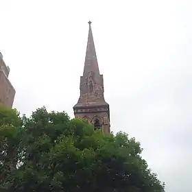 La iglesia fue diseñada por el arquitecto Thomas A. Roberts en estilo neogótico. Fue construido entre 1868 y 1872.[1] Construido con piedra arenisca de color claro, cuenta con una torre cuadrada alta con una aguja de broche.[2]