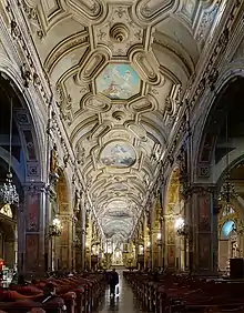 El templo principal está compuesto por una planta de tres naves. Su ancho es de 45 metros y su largo, desde la fachada hasta las puertas que dan a la calle Bandera, es de unos 100 metros. Ello da una superficie de unos 4500 metros cuadrados.