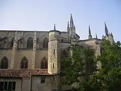 La catedral data casi toda de los siglos XIII y XIV y se basa en el modelo de las grandes catedrales góticas del norte de Francia. El interior consta de una nave larga y sin transepto y fue reconstruida entre 1583 y 1635 después de que los hugonotes la hubiesen dañado seriamente en 1561.