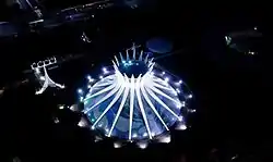 Su estructura estuvo lista en 1960,[3] y solo aparecían el área circular de setenta metros de diámetro, de la cual se elevaban dieciséis columnas de concreto (pilares de sección parabólica) en un formato hiperboloide, que pesaban noventa toneladas.
