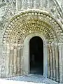 La parte más antigua de la actual iglesia data de alrededor del año 1180. El pórtico de entrada es una obra cumbre de la escultura románica, el arco de medio punto contiene figuras de cabezas humanas, animales, figuras geométricas, elementos vegetales simbólicos. En el tímpano se muestran cabezas humanas. Las ventanas situadas en la cara este del presbiterio datan del siglo XIII y el arco del presbiterio que muestra unas figuras de ángeles y una sirena data del siglo XV.