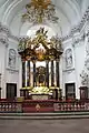 La catedral actual se encuentra en el sitio donde estaba la basílica Ratgar (una vez la basílica más grande al norte de los Alpes). La basílica de Ratgar fue demolida para dar paso a una nueva edificación barroca, cuya construcción se inició el 23 de abril de 1704, en parte, utilizando los cimientos de la basílica anterior. En 1707 se completó la estructura básica. El techo se terminó en 1708 y el interior en 1712. La nueva iglesia abacial fue dedicada el 15 de agosto de 1712.