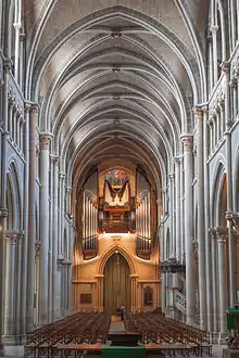 Los grandes órganos de la catedral de Notre-Dame fueron inaugurados en diciembre de 2003 y forman un instrumento único en el mundo, tanto por su diseño como por sus características técnicas (estilos clásicos y sinfónico francés, barroco y romántico alemanes). El organista titular es Jean-Christophe Geiser, profesor del Conservatorio y HEM de Lausana. Su instalación implicó la eliminación del púlpito de 1505, ubicado en el centro de la tribuna inferior, del que no subsiste más que residuos. Se ha depositado la barandilla adornada con rellenos ciegos.