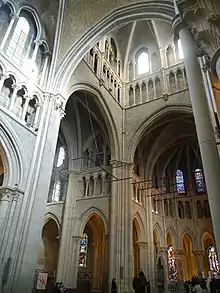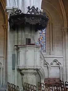 La renovación del vitral religioso sensibles en la segunda mitad del siglo XIX tuvo consecuencias significativas para la catedral.[22] Una primera etapa, precoz, se observa en la década de 1860 (vtrales heráldicos de Alfred Gérente, 1867-1868, en la nave lateral sur) y luego en 1892 con el gran vitral de Paul Robert, "La Ley y la Gracia", en la capilla Montfalcon.