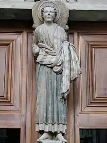 El conjunto de la estatuaria en piedra, excepto la estatua decapitada de la Virgen con el Niño en arenisca del nártex, fue en cambio bien conservado. Quedan importantes fragmentos de la policromía arquitectónica en el interior (especialmente en la capilla de la Virgen) y especialmente en las figuras del «portail peint» ('portal pintado') (siglo XIII) cuya restauración se completó en 2007.