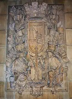 El friso de la izquierda, tallado por Francisco Nieto, Fernando Sánchez y Gaspar Casas, representa escenas de la Guerra del Rif de 1909. El de la derecha, obra de Francisco País, J. M. Aramburu y Juan Payés, contrapone la Escuela Religiosa y la Escuela Laica. Este relieve es un testimonio del conflicto educativo vivido entre Iglesia y Estado en los años (1910-1912) del Gobierno de José Canalejas, promotor de la enseñanza laica y del control de la actividad cultural de las órdenes religiosas.