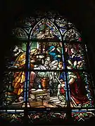 Las vidrieras de la girola, ejecutadas entre 1912 y 1914 por la casa madrileña Maumejean, forman una abigarrada corona de mártires, santos, confesores y vírgenes que brilla bajo ricos doseletes y pináculos vítreos de tonalidades doradas. Una tercera colección de vidrieras, representando figuras más estilizadas y movimientos contorsionados, filtra la luz del ábside alto.