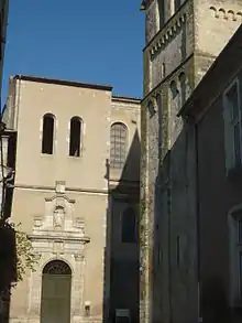 Détruite, à l'exception de son clocher roman, lors des guerres de Religion du 16e siècle, l'ancienne cathédrale fut reconstruite en 1624 sur un nouvel emplacement, séparé par une rue de l'ancien clocher. En 1673, elle subit des restaurations et un choeur fut ajouté. Les quatre travées de la nef sont bordées par six chapelles et deux vestibules disposés au fond de l'église. Les chapelles sont insérées entre les contreforts. Le décor peint en camaieu a été conservé. Des peintures semblables se retrouvent autour du sanctuairer. Le décor du choeur se compose de trophées en bois doré. L'entrée se situe face à l'ancien clocher. Les portes nord et sud sont en plein cintre, accostées de pilastres cannelés et surmontées d'une frise et d'un entablement à denticules. Au-dessus, une niche abrite une statuette. Les vantaux sont anciens, garnis de clous, avec porte médiane, tiercée. Chacune de ces portes donne accès à un vestibule voûté en berceau transversal. Sur trois façades, une grille de protection délimite un espace où se trouve des croix en fer forgé.Referencia n.º PA00095507 en la base Mérimée del Ministerio de Cultura de Francia.