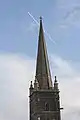 La iglesia actual fue construida por William Parratt, de Londres, y fue consagrada en 1633.[4] Es un buen ejemplo de "supervivencia gótica" en la arquitectura gótica inglesa del siglo XVII, contemporánea de la capilla del colegio de Peterhouse, en Cambridge.[4] El estilo se ha denominado "gótico de los Plantadores".[5] En 1633 se colocaron los cimientos para un cancel que ampliara el extremo este, pero las obras no avanzaron más.[5] En el pórtico hay una inscripción: [5]