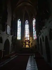 Ya en el siglo XII hubo una pequeña basílica en el sitio. Esta fue reemplazada en 1306 por el actual edificio, que sirvió como la iglesia de la abadía que durante la Edad Media se puso de pie en el borde de la ciudad. En 1379 el techo abovedado del templo fue colocado. La iglesia fue alterada varias veces hasta el siglo XVI. En 1413 se añadió la capilla gótica de la Mater Dolorosa, que fue dedicada en 1420 por el obispo de Freising, Hermann von Cilli. Aquí se encuentra una Piedad de madera tallada, que es el principal tesoro de la iglesia.