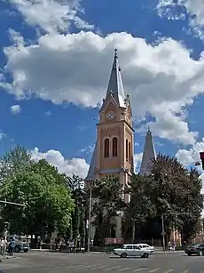 La iglesia está decorada con un tono marrón claro. Su principal y más alta torre está adornada con un reloj, y el portal de entrada fue decorado con un arco abovedado y columnas. Posee una capilla anexa que está dedicada a San José que se encuentra cerca del templo y data del siglo XIV. La iglesia fue construida entre los años 1904 y 1905 en un estilo ecléctico. En la época soviética, fue cerrada por las autoridades del partido comunista local. En 1990, fue devuelta a los fieles católica. Desde 2002, es la catedral de la nueva diócesis de Mukáchevo (Dioecesis Munkacsiensis Latinorum; Єпархія Мукачево) que fue creada mediante la bula Cum Transcarpatiae del papa Juan Pablo II.