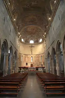 El interior de la catedral está bien surtido con esculturas y obras de arte. Los frescos del techo del siglo XIX son de Maurizio y Tommaso Carrega. Otros frescos, particularmente los del ábside, son del siglo XV.