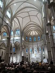 La actual estructura de estilo gótico fue diseñada por Egan y Prindeville de Chicago y se terminó en 1906. El contratista de Filadelfia Thomas Reilly construyó la nueva catedral en el barrio de Oakland. La catedral sirve a las necesidades espirituales de aproximadamente 3.000 fieles. Se convirtió en una propiedad que contribuye en el distrito histórico de Schenley Farms el 22 de julio de 1983, en el Registro Nacional de Lugares Históricos.