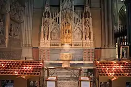A finales de los años 1930 y a principios de los 1940, hubo una restauración de la zona del altar principal bajo la dirección del arzobispo Francis Spellman, quien luego se convirtió en cardenal. El alto altar anterior y el retablo fueron reubicados en la iglesia universitaria del alma mater de Spellman, Fordham University, en Rose Hill, en el Bronx, Nueva York. Entre los nuevos elementos se encontraban el baldaquino santuario de bronce y el vitral del rosetón. El altar fue renovado en los años 1980 bajo la dirección del cardenal John Joseph O'Connor. Para ser más visible para la congregación, se construyó un altar a partir de secciones de los altares laterales y se ubicó en el centro del presbiterio. Sin embargo, este altar fue retirado en 2013 para reponer la pila bautismal en el transepto norte.