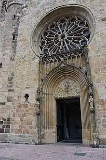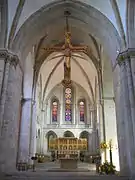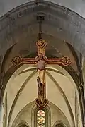 Las partes más antiguas de la actual iglesia son el cimborrio románico sobre el crucero, la fachada norte y la fachada occidental románico-gótica. La cúpula en la parte media de la nave de tres naves es tan alta como los pilares sobre los que se descansa.