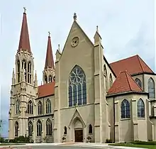El sitio para la catedral fue comprado en 1905. A.O. Von Herbulis de Washington, D.C., fue comisionado como el arquitecto. Von Herbulis fue entrenado en el extranjero y fue elegido por su conocimiento de las catedrales de Europa. Los esbozos ásperos fueron preparados en dos estilos, románico y gótico. Cuando se presentaron los dibujos, el Comité de Construcción eligió la forma gótica; Una moción pidió que el diseño sea aprobado por unanimidad. Von Herbulis modeló la Catedral sobre la base de un templo de Viena con el cual se había familiarizado mientras estudiaba en la universidad de Viena.