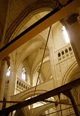 En el siglo XVI se termina la parte alta del edificio, se cubren las nuevas construcciones con bóvedas de piedra y se cambián las bóvedas ligueras de los tramos viejos también por bóvedas de piedra. Para ello se precisa de la construcción de contrafuertes y arbotantes exteriores.