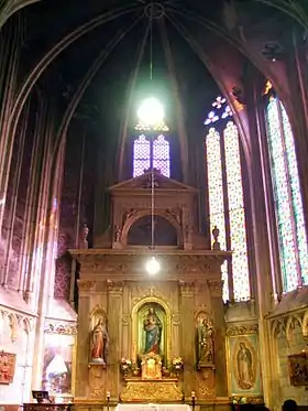 De forma decágonal tiene un deambulatorio con tramos trapeciales que dan entrada a cinco capillas siendo las tres centrales de geometría hemidecagonal y las dos extremas trapezoidales. las capillas absidales se iluminan mediante ventanales que se abren al paso de ronda y se ubican entre los contrafuertes de las bóvedas. Las capillas de forma de trapecio tienen una única ventana, que también da al paso de ronda. Los muros que forman las capillas son parte de la muralla que circundaba la ciudad.