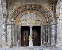 El «Maestro de Santa María», como se conoce al segundo escultor, tenía un mayor talento aún: la arquivolta más alta evoca el cielo con los 24 ancianos del apocalipsis. De cada lado surge un grupo esculpido: a la izquierda, un monstruo traga un hombre, condenado por sus pecados, a la derecha, un caballero pisa un enemigo vencido, cuya cara nos muestra el espanto. Estas obras siguen siendo tradicionales por el tema, pero son originales por la variedad de las actitudes y el vigor de las expresiones. La otra arquivolta ofrece un contraste total: consagrada a las escenas de la vida terrestre, enseña una caza del jabalí, la pesca de salmones y los diversos preparativos de un festín: todas estas figuras son sorprendentes por su vida y naturaleza.
