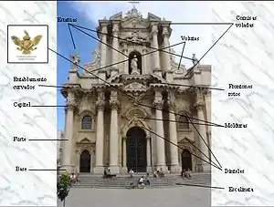 - Los entablamentos adoptan la curva y los frontones se parten y adoptan curvas, contracurvas y espirales.