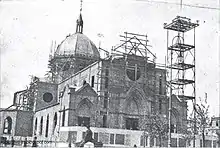 El edificio, de estilo gótico,[1] se construyó durante los años 1910 y 1950 sobre terrenos donados por Juana Ross Edwards.[2] Los arquitectos del proyecto fueron Alberto Cruz Montt y Ricardo Larraín Bravo. La construcción fue realizada por el ingeniero Juan Tonkin. La estructura consiste en pilotes de concreto armado de 12 metros de profundidad junto con una estructura metálica que forma una gran jaula con la forma del edificio que fue rellenada con hormigón. Hacia el costado del edificio de Avenida Pedro Montt, se albergaban las oficinas administrativas, el palacio episcopal y los locales comerciales que otorgan beneficios mediante su renta.